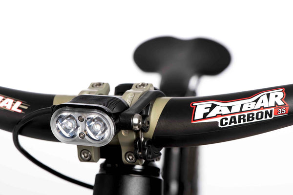 A huge benefit of its design is the ability to mount on the front of the helmet meaning you’ll never catch your light on another overhanging tree. Additionally it can also mount on the handlebar or on the headstrap (available separately) – it can also be mounted on a rifle or hunting bow using the go-pro style helmet mount!